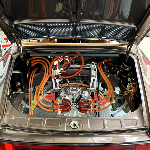 It was a valuable learning experience with astounding final results. The raw power of electric drive is palpable, and the vehicle boasts a BMW i3 battery pack that allows for an approximate range of 300 km. Our custom battery management system not only supervises the battery but also controls the entire vehicle system. By retaining the original displays, gauges, and indicators, the interior remains unchanged, seamlessly concealing the conversion. The performance of the vehicle now rivals that of a classic Porsche 911. Additionally, the car is equipped with fast charging capabilities alongside the traditional Type 2 connector.